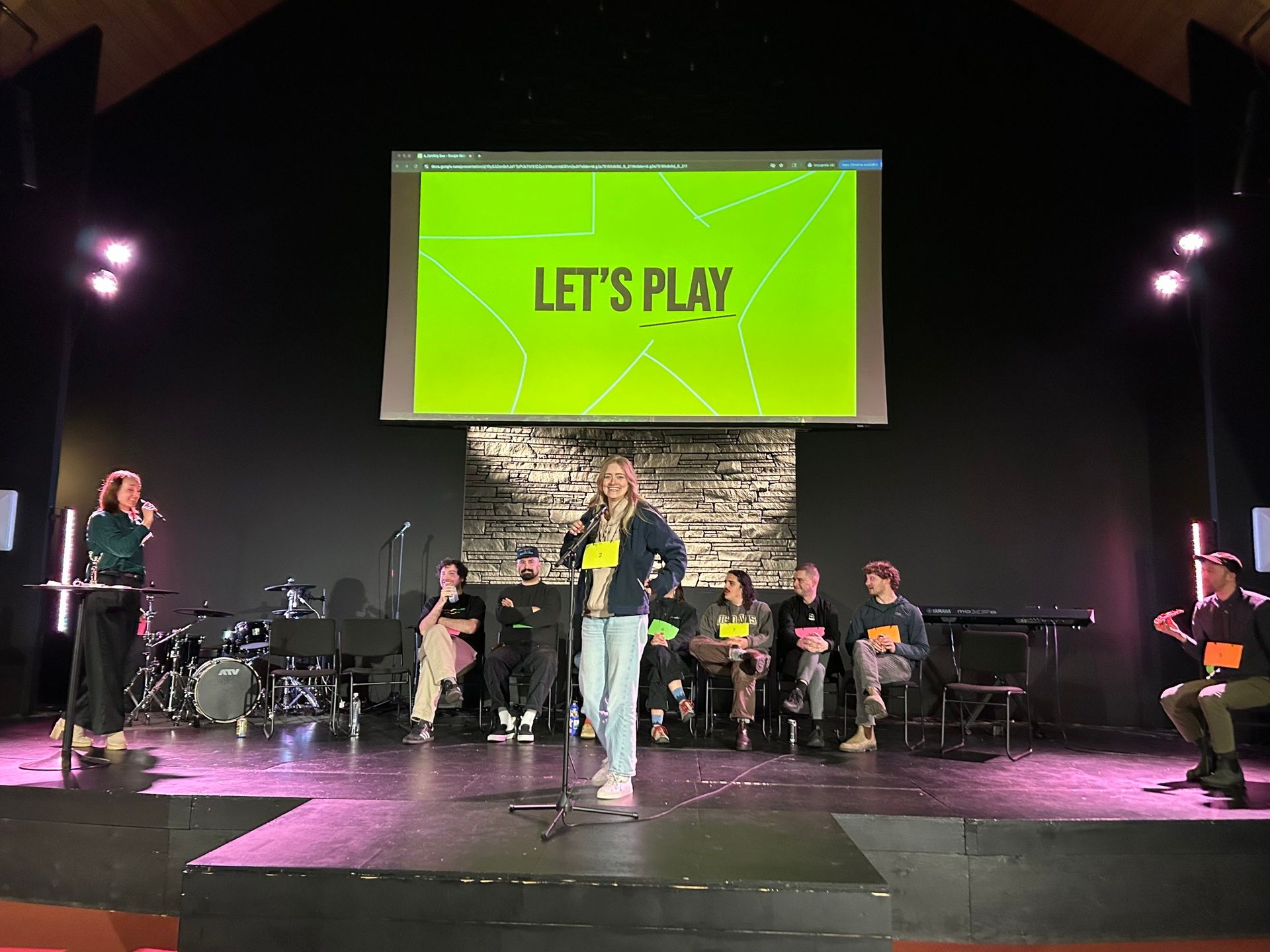 Lael Rogers steps to the mic as the competition heats up / Photo by Kelsi